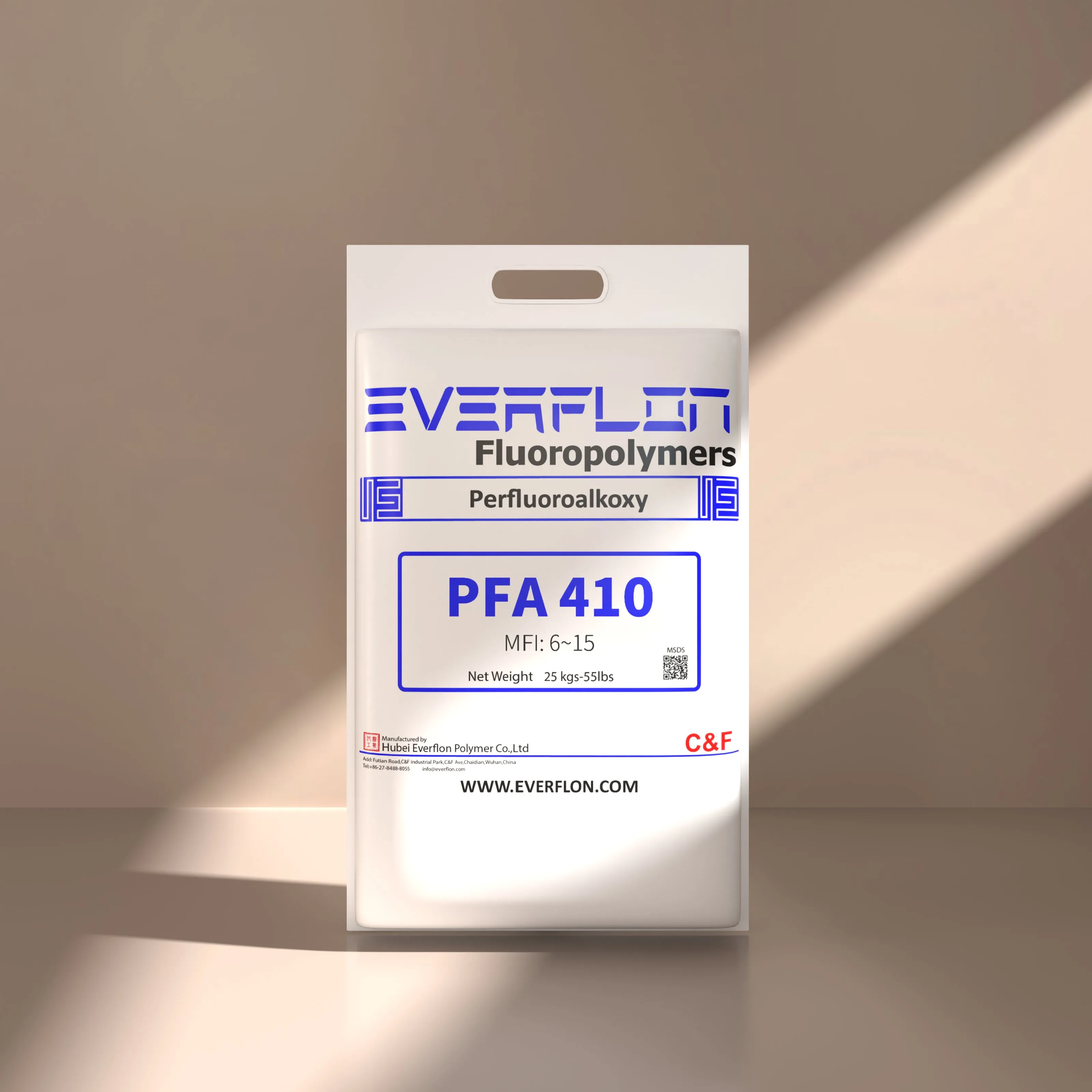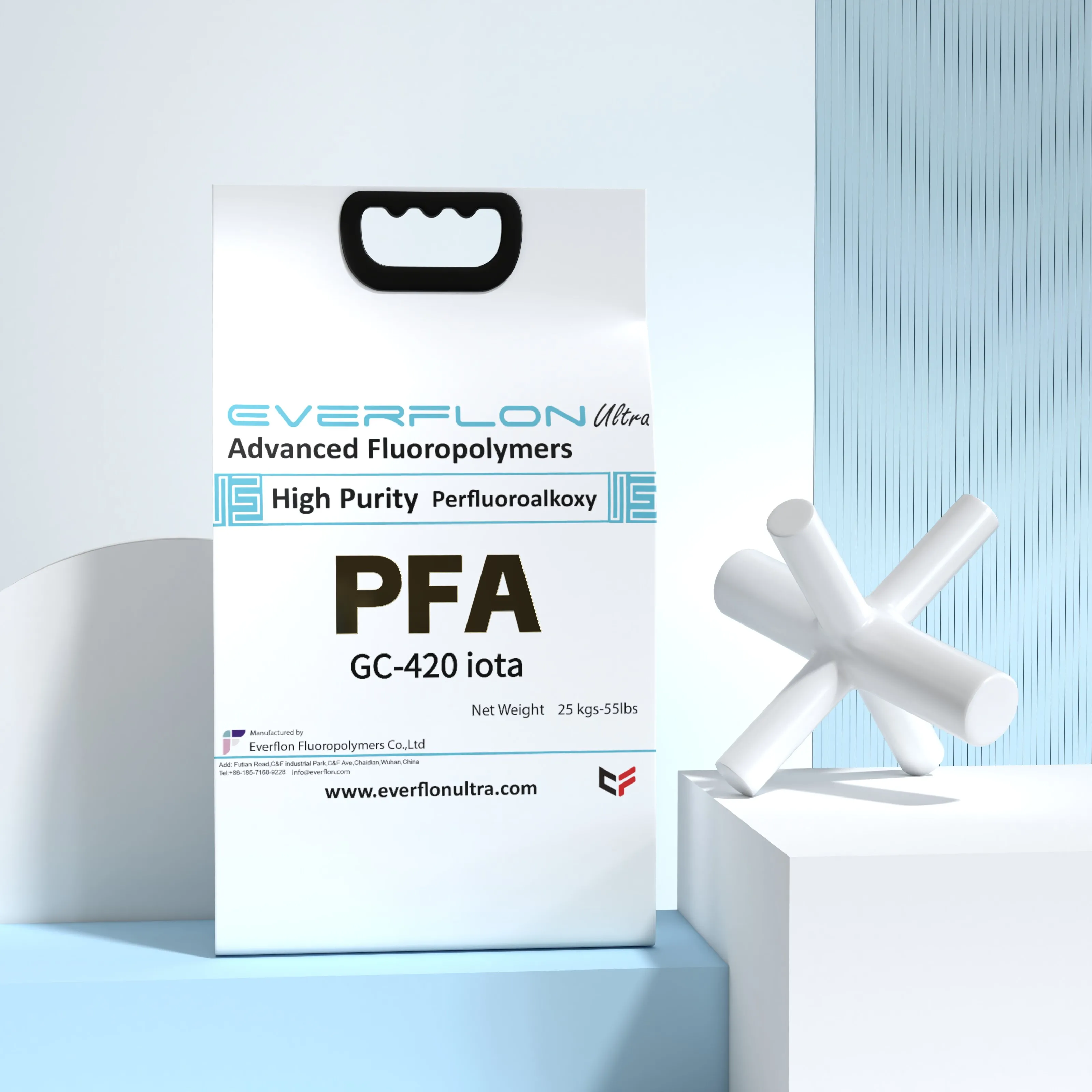 Everflon™ PFA wird als Pellets geliefert und ist in 25-kg-Mehrschichtsäcken mit einem integrierten Polyethylen-Innenfutter erhältlich.